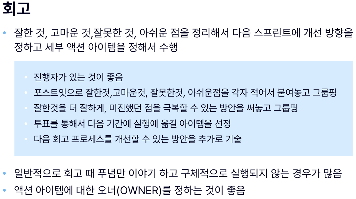 - 스크럼 사이클을 돌려가며 지치지 않게 잘 관리해야 함