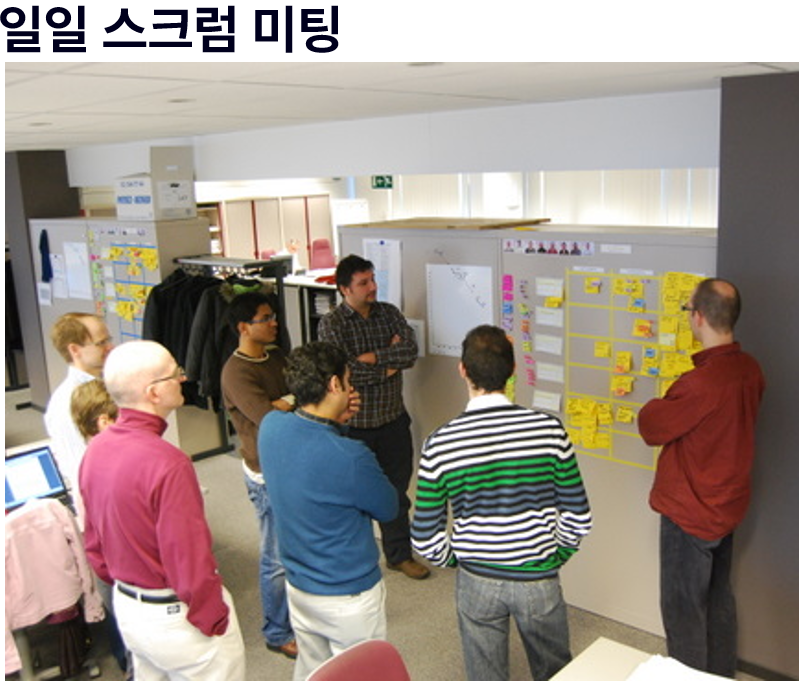 - 추가 회의가 필요하면 스크럼 미팅 끝나고 → 업무 보고 시간이 되면 안된다