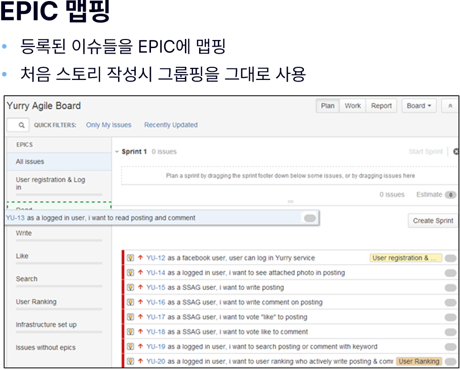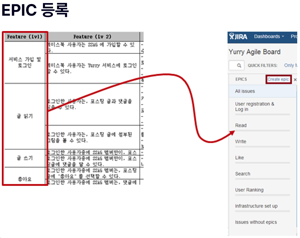 - 사용자 스토리 기능 나온 것을 하나 하나 Jira에 등록