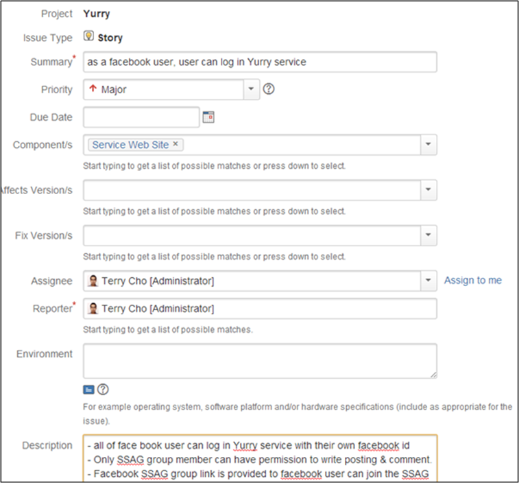 - 분류, 스토리, 설명 형태로 기술하는 것이 좋음