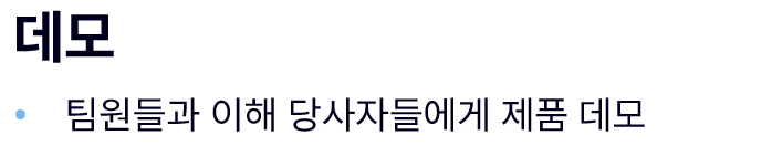 - 생각보다 잘 안됨. (회의는 하지만 컨택스트 공유가 잘 안됨) → 될때까지…